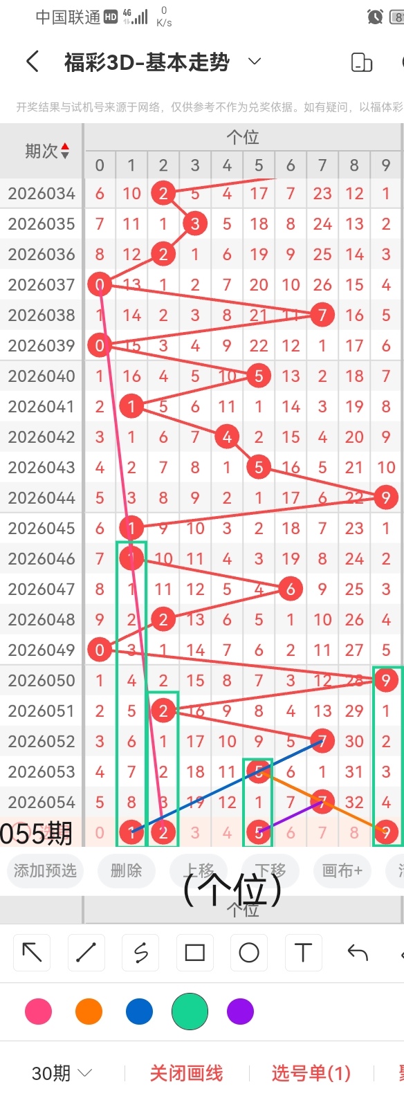 通过以上对上期的简单回顾,下面进入2026055期(下面简称本期)的选号分析: