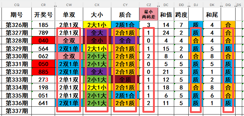 3,最近10天当中,两质一合开出1次,两合一质开出7次,全质数开出1次,全合数开出1次。近期需重点关注开奖号码两质一合的回补!