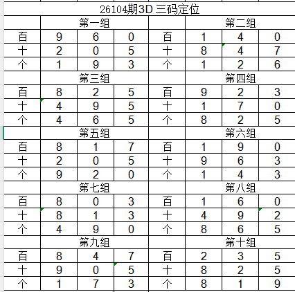 2026104期五码定位(百位、十位、个位):