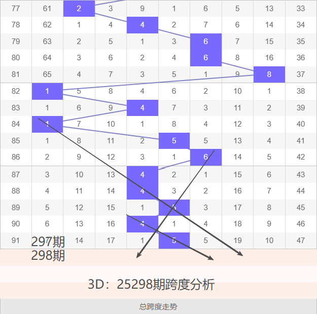 近3期跨度变化不大,上期振幅1,近期10期跨度分别为:1跨,4跨,1跨,5跨,6跨,4跨,4跨,5跨,4跨,5跨,小跨度近期有开始走强的趋势,跨度目前整体是明显的开始偏向于大跨度的,本期个人预期跨度是可能走向大跨度,可参考:1 跨 ,2 跨,3跨,同时防 :6跨,7跨,8跨,