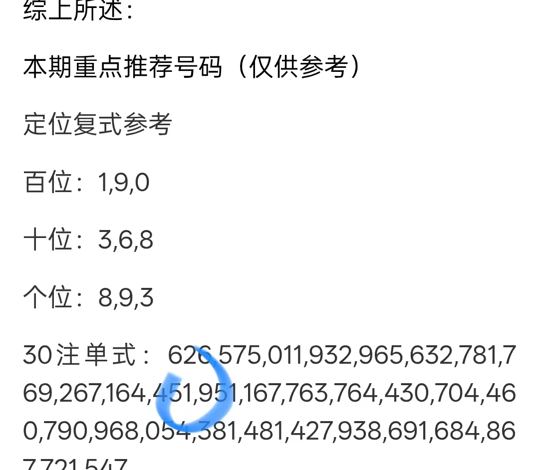 本期重点推荐号码(仅供参考)
