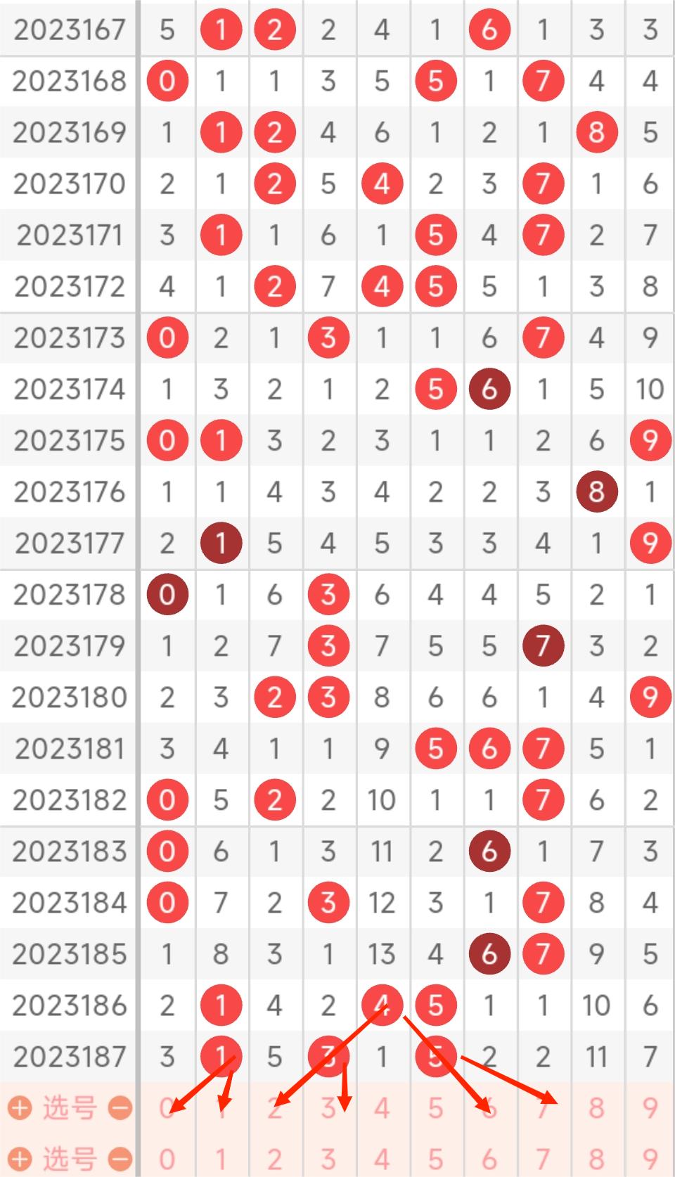 上期百位开出号球5号,012路中是2路球,最近百位号码球的走势:大小周期的波动在1~3期间变化,一期和二期变化为主,其中小号球开一期,大号球连开二期的走势比较明显,本期百位号码球的走势有可能是大号球二连出,其中2路号码球继续连出的可能性较大,大号球重点注意5号球和8号球以及7号球的开出,012路号码球中,2路号码球(2 5 8)出现的可能性较大,2023166期至2023167期的走势是号码球5号转开号码球2号,所以本期的重点号码球是2号 5号 8号和7号球