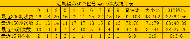 最近15期奖号由冷到热表现为:3→0次,0、1、2、6、8→1次,4、7→2次,5、9→3次,奖号奇偶比为9:6,大小比为10:5,012路比为5:5:5。
