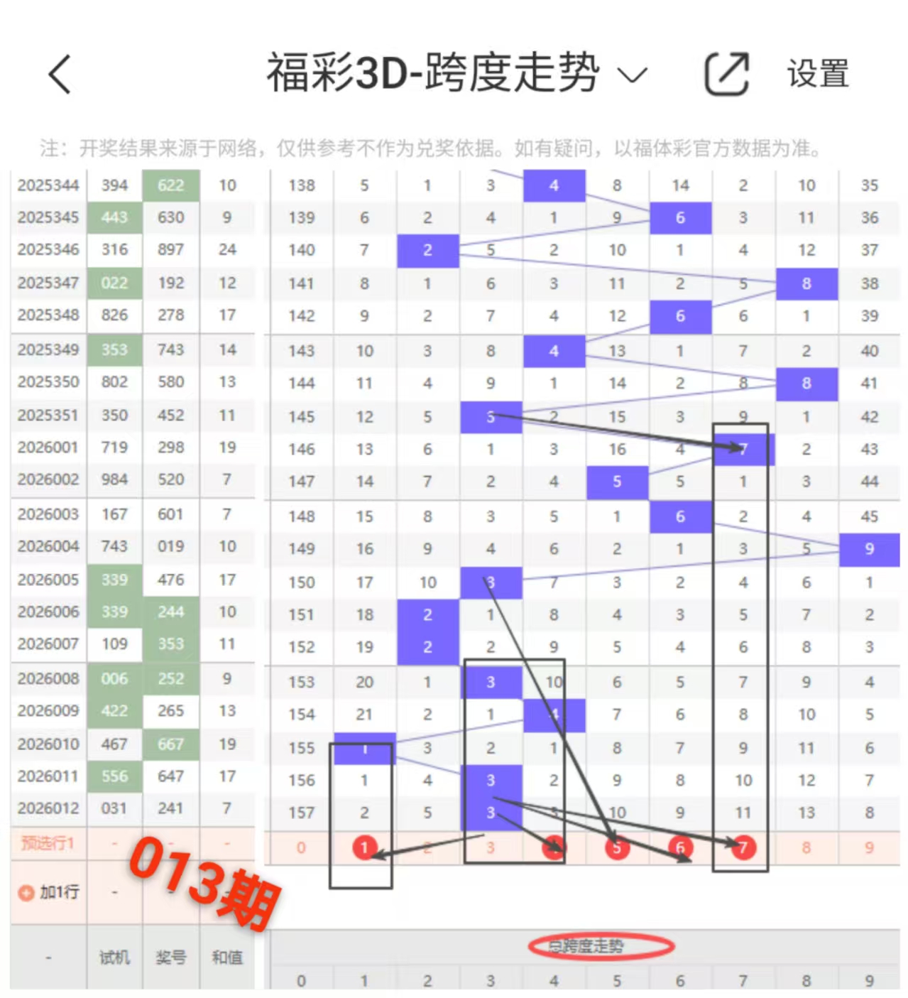 上期复盘:上期开奖号241,组六形态,和值7,跨度3,1个奇数2个偶数,上期试机号031。(统计试机号这个数据是因为咱们有些小技巧可以从试机号里面选取出胆码的,在一定的概率上是能提高中奖率的。)