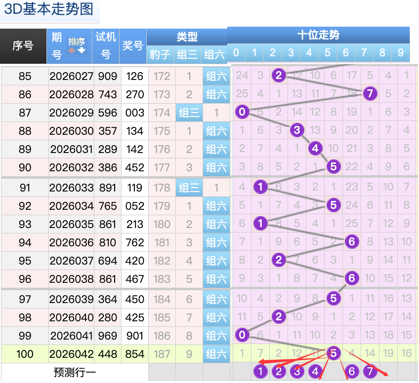 上期的3D个位开4号球,上期开出的是组六按照形态的话本期打组六形态,上期的4号球的落位是个位上的一个冷码回补落位趋势,本期先来看7号球在个位还是有机会继续走大码常搭配的落位点这里要注意是一个冷码空8落位3号球和1号球是这里的落位点是两个冷热码的落位点这里注意防守一码就好了也是这里的两码走势都是非常好看的注意选择一码,再看2号球这里注意是一个错位号的落位趋势要注意防守