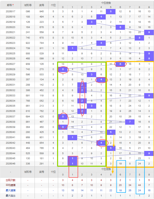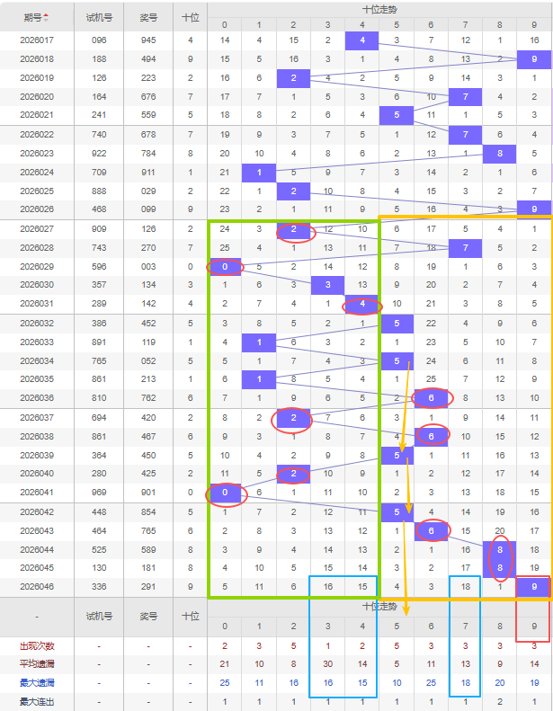 福彩3D第2026047期百位首先分析本期百位奇偶数的形态,可以看到近20期开出奇数号9期,偶数号11期,开出偶数号的概率稍大于开出奇数号的概率,但上一期也是开出了偶数号2号,那么本期开出偶数号概率较大,根据以上所述本期继续看好偶数号,建议继续选择遗漏期数较大的偶数号开出。偶数号0号、6号都已经遗漏了十期以上且达到自身最大遗漏期数,建议防冷号开出。杀号建议定在所有奇数号,但奇数号3号已经遗漏了39期,是目前百位号遗漏期数最大的号,同时还达到自身最大遗漏期数,建议防冷号开出,同时也与上一期开出的2号形成邻号。