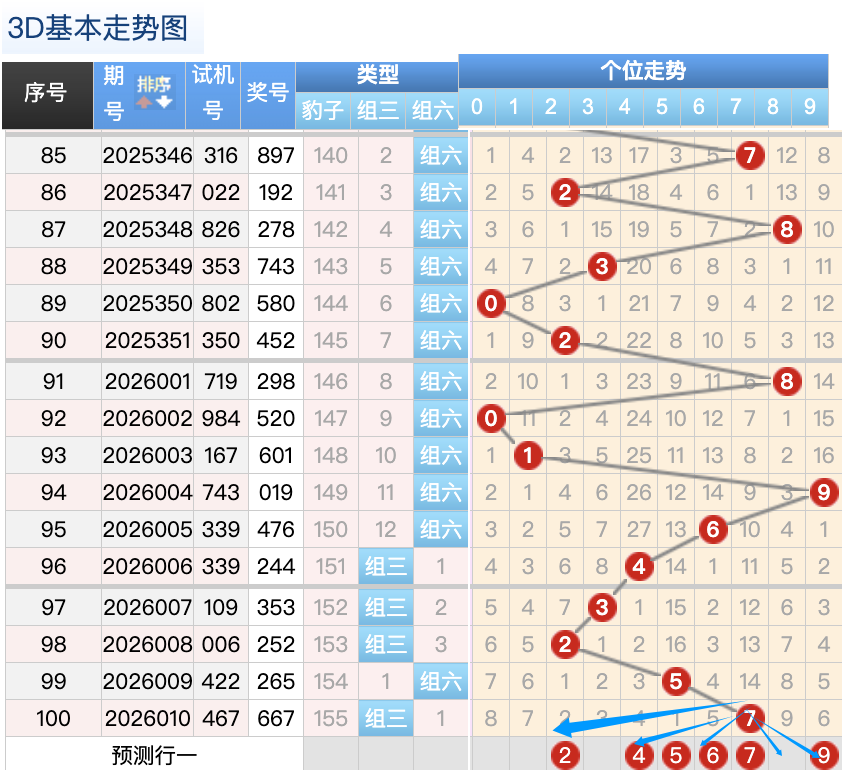 上期的3D个位开7号球,上期开出的是组三按照形态的话本期打组六形态,上期的7号球的落位是个位上的一个冷号的落位趋势,本期先来看2号球在个位还是有机会继续走出小号落位点这里要注意是一个折返的落位点,5号球和6号球是这里的落位点是两个小周期号码的落位点这里注意防守一码就好了也是这里的两码走势都是非常好看的注意选择一码,再看9号球这里注意继续走等差的落位形态。