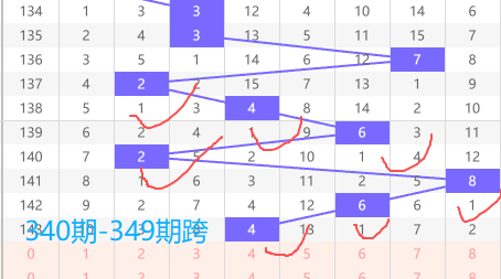 跨度分析:上期开出4跨,双跨,从走势图上来看,7期开出的跨都是双跨,预期本期走单跨。综合考虑,本期跨度推荐小跨:1跨,2跨,3跨,5跨。