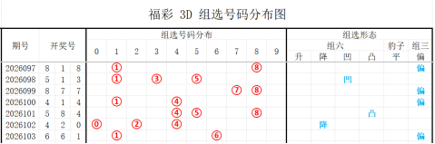 通过对走势的综合判断,现对福彩3D 2026104期分析如下: