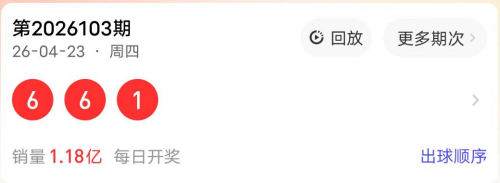 2026103期开奖号码为661,奇偶值为2偶1奇;大小值为2大1小;012路走势为001路;跨度为5跨;和值13点;组三形态。