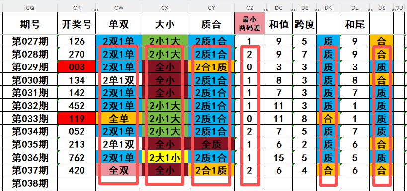 3,最近10天当中,两质一合开出7次,两合一质开出2次,全质数开出1次,全合数开出0次。当前开奖号全合号码遗漏11期,近期需重点关注开奖号全合号码的回补!