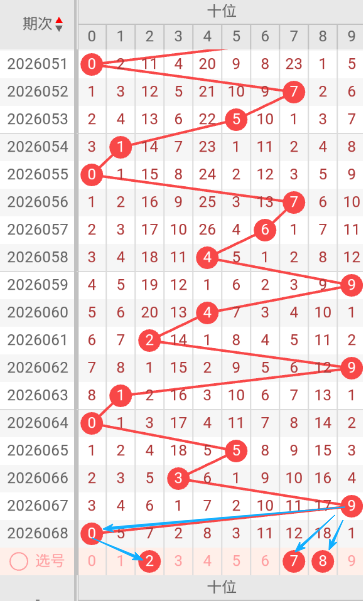现在我给大家分析下,本期十位可能开出的号码,上期开出了0,056期开出了7号码球,057期开出了6号码球,058期开出了4号码球,059期开出了9号码球,060期开出了4号码球,061期开出了2号码球,062期开出了9号码球,063期开出了1号码球,064期开出了0号码球,065期开出了5号码球,066期开出了3号码球,067期开出了9号码球,068期开出了0号码球,根据这几期的走势和历史30期内的走势对比,本期判断可能会出双号,下面我给大家推存十位可能开出的几个号,个人比较看好278,十位我们就先暂定这两个号。本期重点关注,2-8之间的号码,同时关注遗漏期数较小的号码。按最近遗漏走势,开了遗漏期数较大之后开遗漏期数小的可能性比较大。