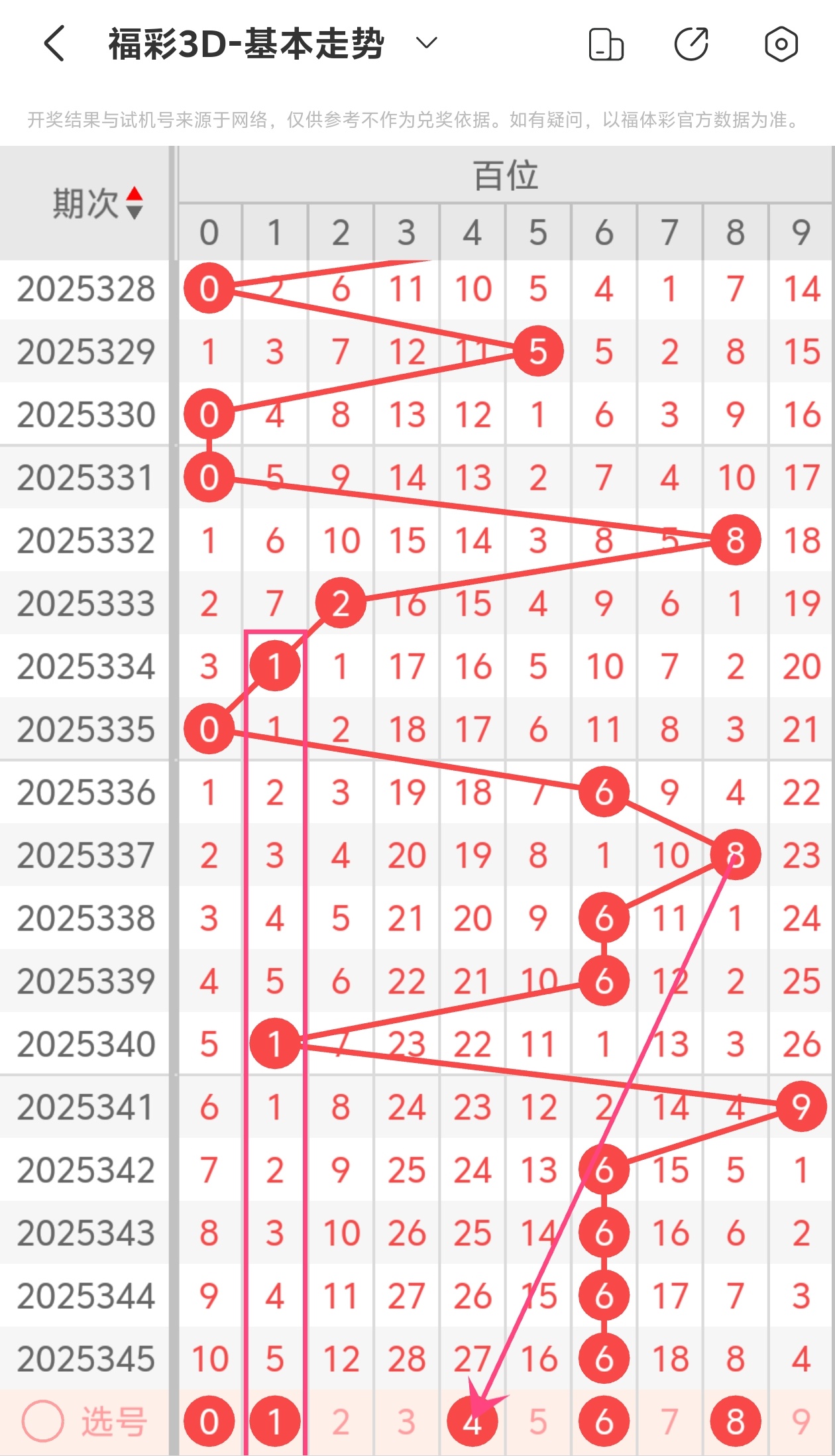 下面是福彩3D的百位走势图分析