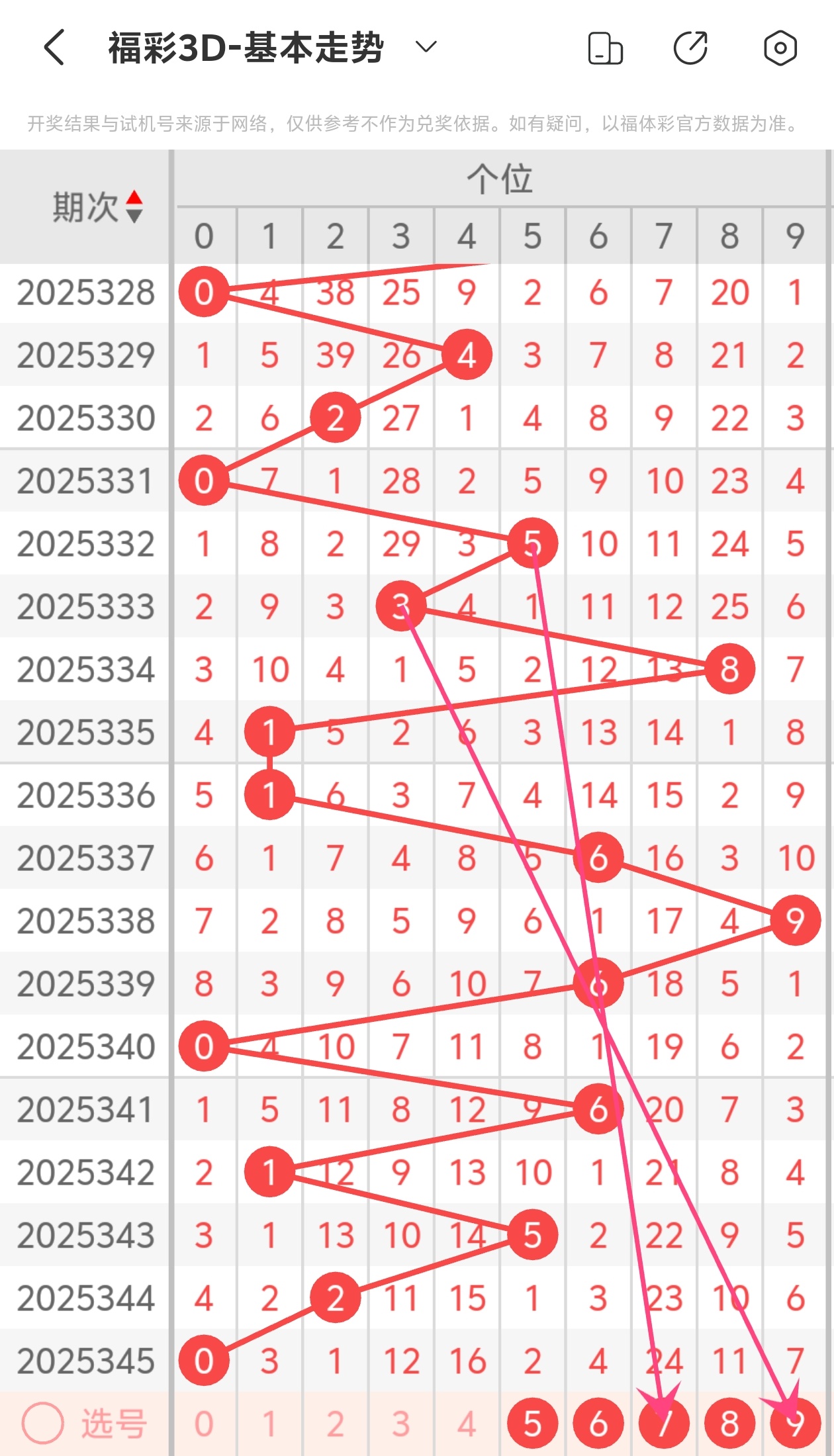 下面是福彩3D的个位走势图分析