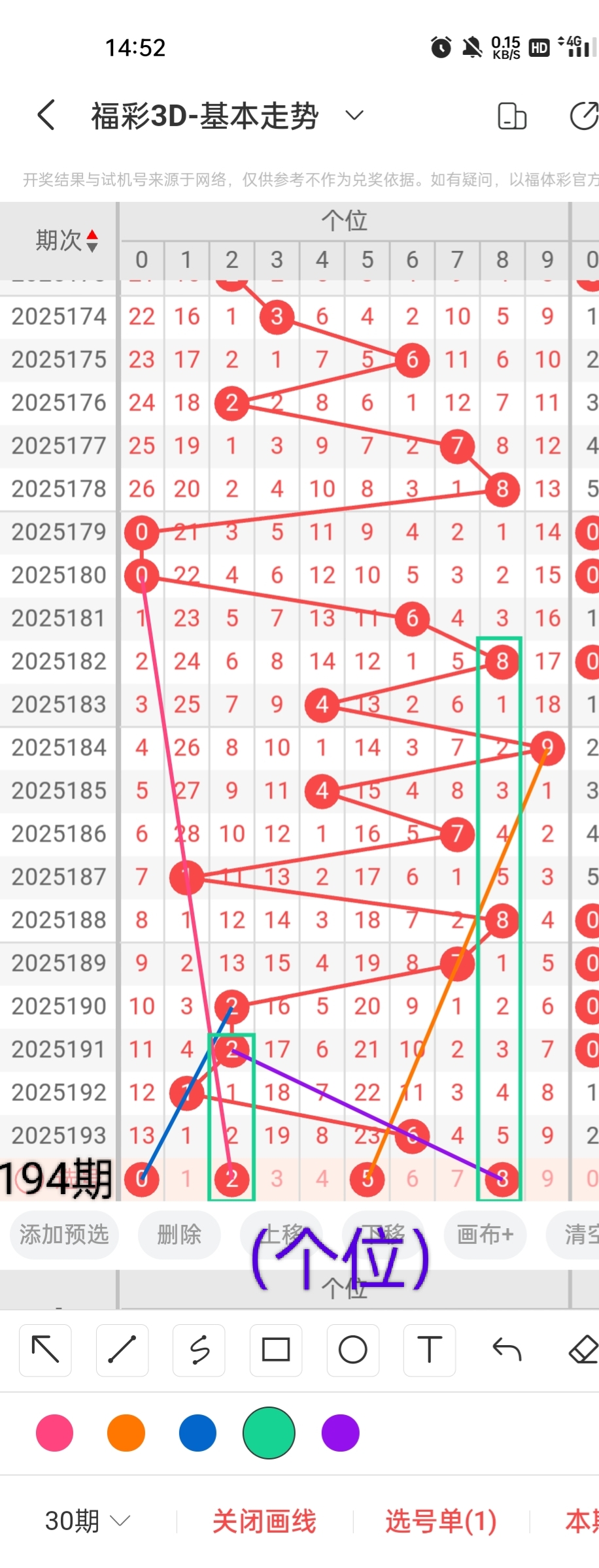 通过以上对上期的简单回顾,下面进入2025194期(下面简称本期)的选号分析: