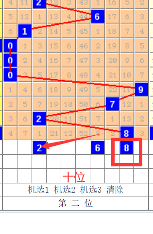 现在来看一下10位这样的一个位置,上一期开了一个6跨的8号,那么本期的话,这个8也是有重复直落的可能。嗯,如果是8不重复,那么还是会向左进行运动。那么向左的一个位置,嗯,我大概判断了一下,嗯,应该会在268中间产生,大家对照着走势图啊,看一下这几个号怎么样