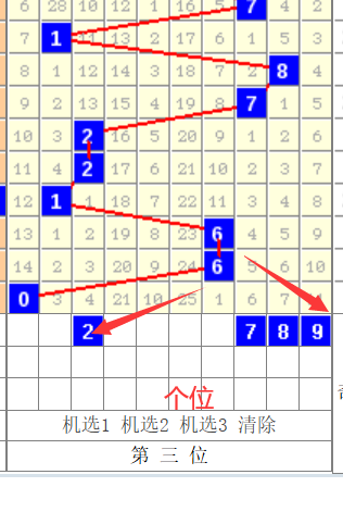 最后呢,我们看一下,个位上一期开了一个,也是一个比较大的一个跨度0。嗯,我们看一下个位的话有几个选择,一个是走这个二,一个会走这个七八九这样的一个大的一个跨度。嗯,这是个位的一个情况