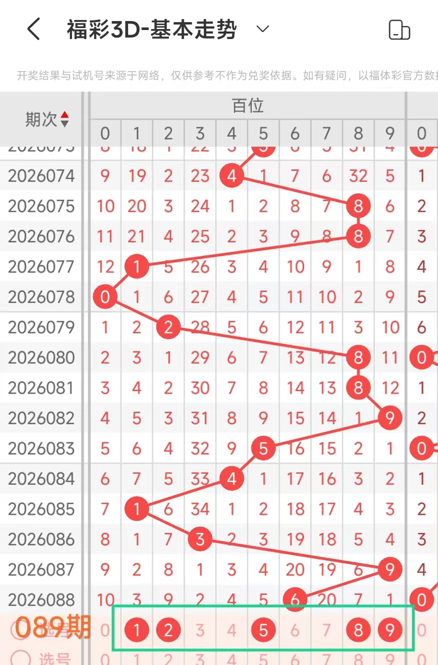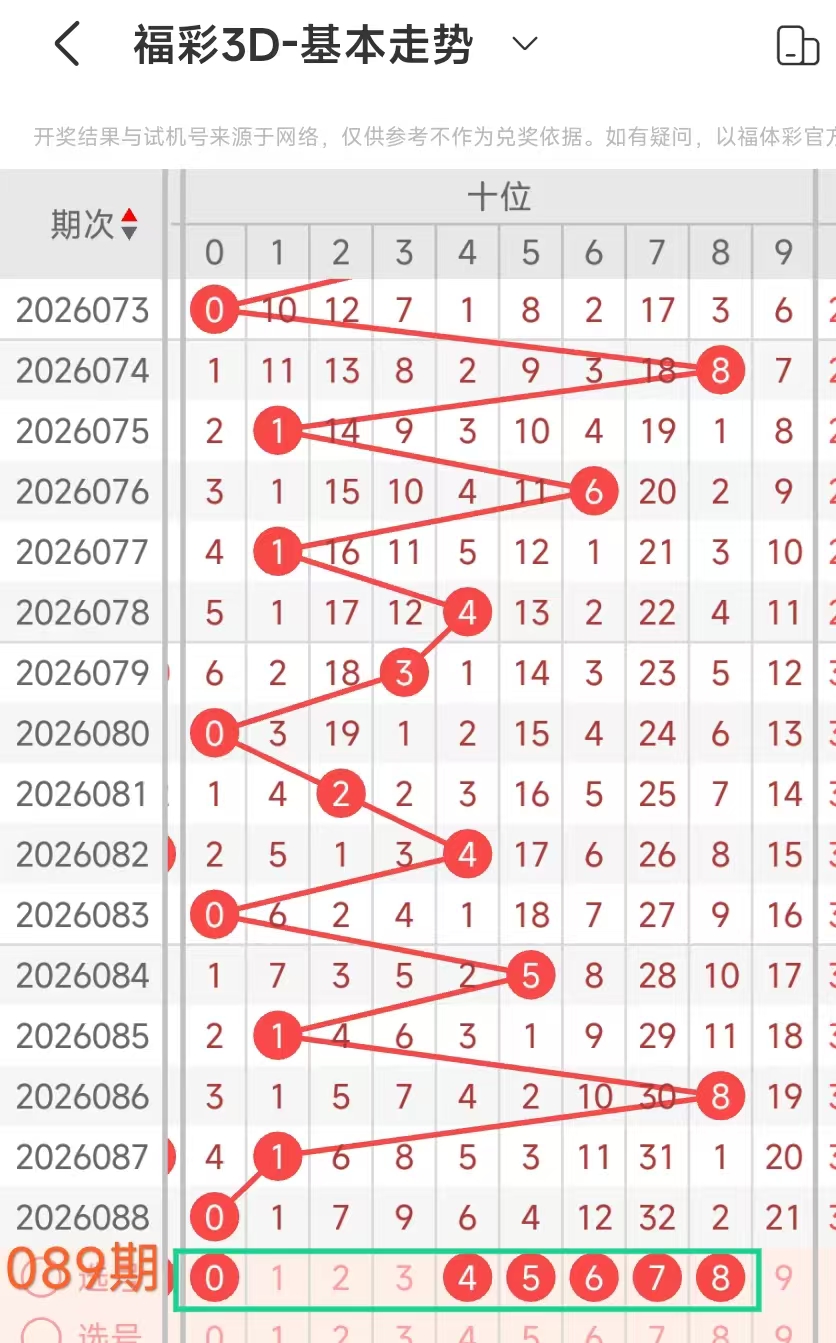我们选取上期开奖号码608、在一起彩APP上截取前100期的数据,分别记录当开出6、十0、个8、后下期开出什么号记录下来,然后一一分析。