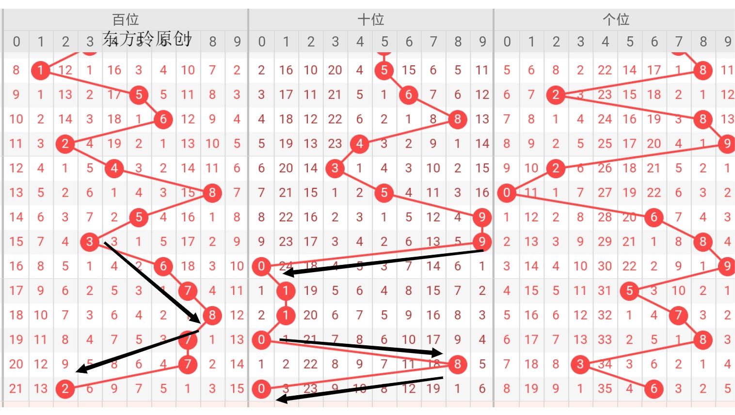 十位:上期开出号码球0号,0号的继续回补,十位号码球可能进入一个热态号码开奖的走势之中,近10期的开出奇偶比例是6:4,大小比例是6:4的正常周期波动比例,其中号码球0号出现3次和号码球9号出现2次!在经过查询100期内的开奖号码中发现,超过十期的号码球有:号码球1号15期.号码球1号13期.号码球3号10期.号码球5号11期,其中号码球2号遗漏23期之久,十位在近100期中并没有发现号码球0号转为2号的走势,本期应重点关注该走法的可能性,号码球0号转开号码球5号的走势在十位是有多次的历史走法,如2022347期至2022348期的开奖号码走法等,十位遗漏球超十期有:2号(23期).6号(12期).7号(19期)的一个众多遗漏的指标,同时也从侧面反映了小编的推测:近期十位处于热态号开出的走势!