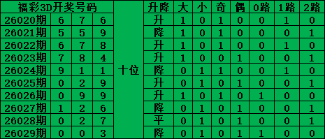 升降分析,上期是平参考上次开出数据降,本期选择升:1-9号。