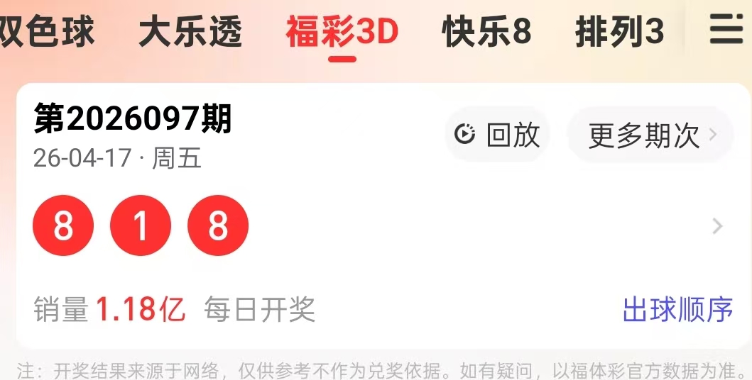 开奖回顾:上期开奖号码为818,和值17,跨度7,奇偶比1:2,大小比2:1,路数为212路。