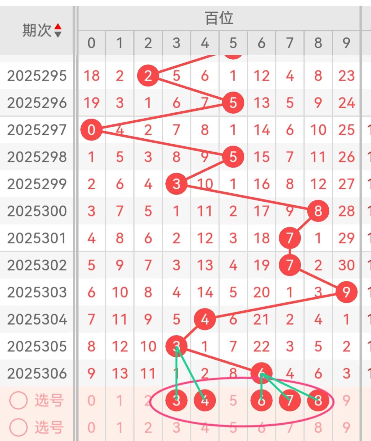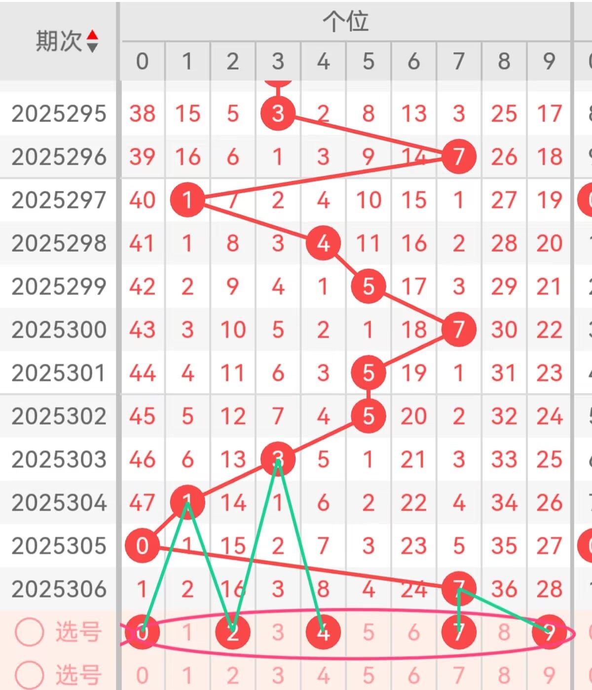 上期十位开出6,百位重点推荐3号:7、6、3。7号的核心优势在于跨位置热度贯穿——不仅是百位热号,符合“跨位热号延续”的历史规律,且1路属性完美契合百位1路强势的趋势;6号作为上期开奖号码,热态未减,同时偶数属性可适度平衡近期百位奇数偏多的格局;3号则是0路号码中的中频代表,近50期出现频次稳定,能有效覆盖“1路转0路”的潜在走势。备用号码推荐4、8:4号同为1路号码,属于中频热号,可作为1路号码的补充选择;8号作为大数区间的典型代表,近期出号频次略低,处于待回补状态,且能进一步强化百位大数主导的核心趋势,与重点号码形成“热号延续+潜力回补”的组合搭配,提升覆盖全面性。