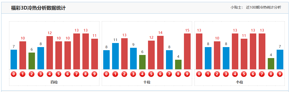 2. 十位分析:上期福彩3D的十位开出了号码6,这是一个大的偶数。从近期的开奖数据来看,十位号码在多个位置上频繁出现,表现出较强的活跃性。然而,值得注意的是,上期的十位号码振幅变化较小且下降趋势。本期在十位的分析中,我们预期该位会继续下降,即关注那些与上期相比数值有所减小的号码。因此,本期重点关注号码01234578
