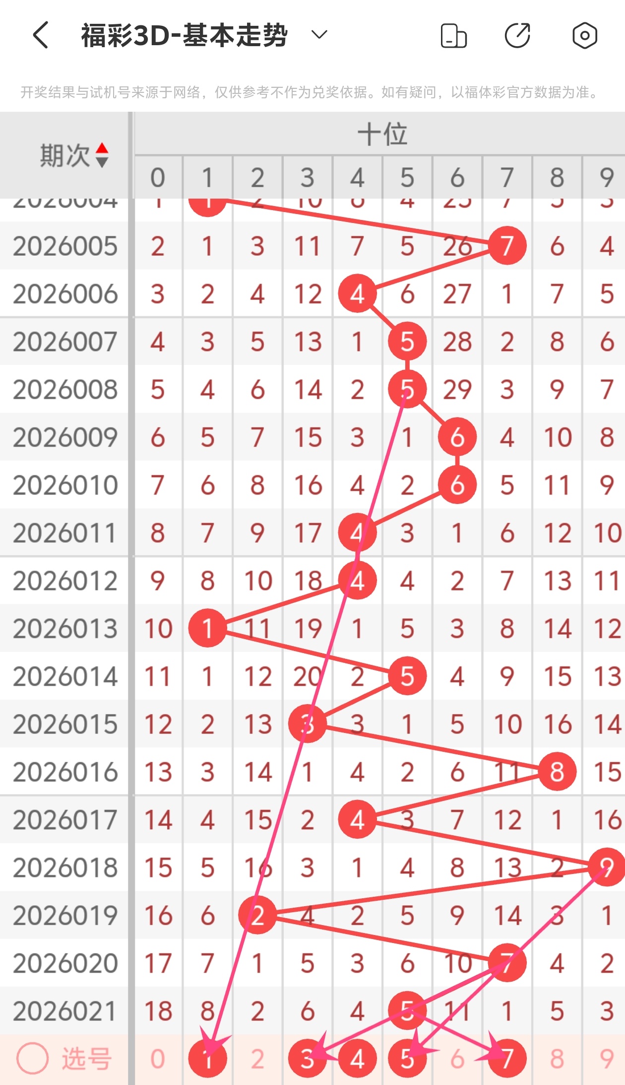 上期十位开出5,本区与上期的跨度为2,本期我们可以从上面走势图中看出选号的思路,1为斜连走势跨度为四,5为斜连走势跨度为二,5为重码带斜连走势,7为隔期回补走势跨二,综合以上分析,本期十位推荐:13457
