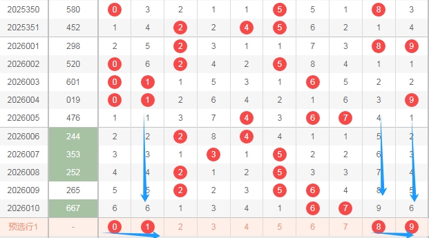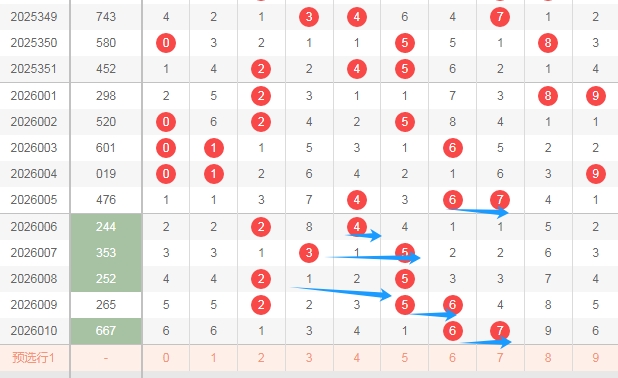 那么根据上面的分析,福彩3D第2026011期可以得到这些数据: