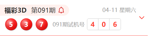 福彩3D第091期开奖结果为:537
