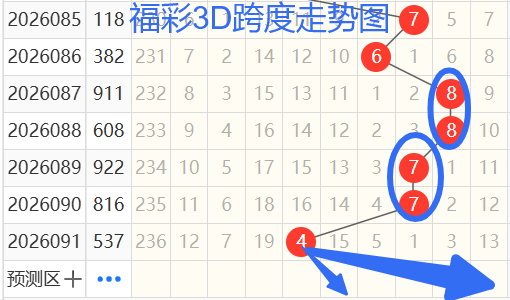 依次是88774跨度,按照路数转换关系来看,那么跨度我们暂定258369跨 ,本期个人比较看好5 9跨。