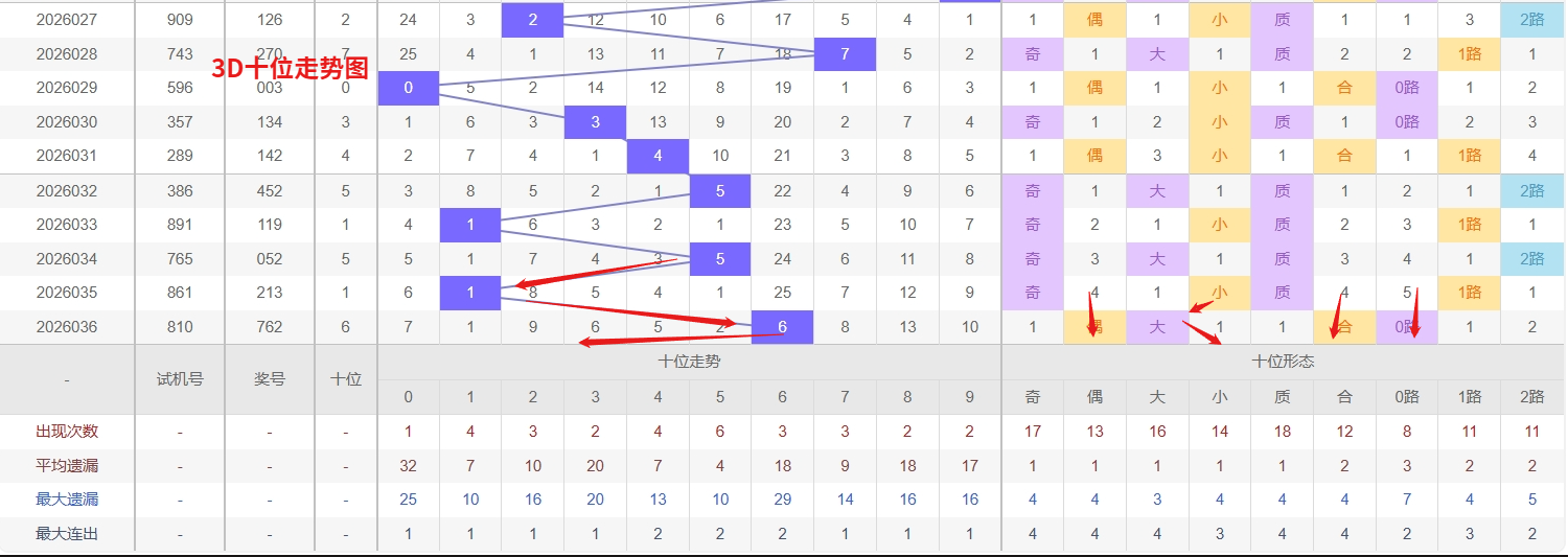跨度分析:第2026036期开出跨度5走出3个跨度振幅,历史100期跨度大小比约为53比47,奇偶比约为51比49。比较均衡因为大数跨度012跨为豹子,对子,顺子这3个形态开出概率都不高所以大跨度占优势。本期大跨度回补概率高经过连续2期的偶数跨度回补后本期有走奇数跨度的可能,上期开出跨度5回补了2路奇数跨度前期大遗漏的不足,符合我们的预期。连跨度回调概率高近期的跨度振幅在2到6之间,本期预计会走2到6个振幅。3D跨度走势观察,6跨和7跨已进入相对较冷的区间,历史遗漏值逐渐累积,统计上存在回补的需求;尤其是当冷跨与近期活跃的号码形态形成共振时,可能出现阶段性反弹。另一方面,4跨作为近期持续走热的热号跨度,其热度惯性往往不易立刻中断,短期内仍需重点防范其连续出号的可能。从5跨处走2到6振幅看好的跨度有1467跨,福彩3D第2026037期跨度参考1467跨。