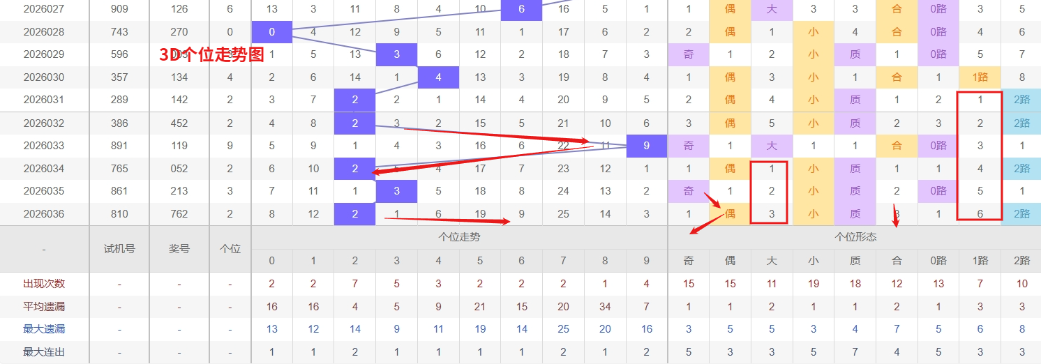 福彩3D个位分析:第2026036期个位开出号码2属于小偶数前端,从以上个位走势图中可以看出近100期的大小比约为51:49奇偶比约为53:47大小奇偶数据上有点差异有需求但不是太明显,不太好看这时就要借助连线走势和遗漏数据来帮助我们缩水号码。上期个位落号“2”小偶数2路号码球,号码开出了1振幅,连续多期的大振必被小振幅取代幅符合我们的预期,那么本期我们在个位考虑振幅走势走前依然要转变思路考虑大振幅,具体考虑(2-6)个振幅是我们主要的方向,那么在对个位落号情况进行系统的分析时我们可以明显的看到个位号码走势呈现大范围震荡,尤其是在号码的落位特点上表现的尤为突出,那么本期我们在个位分析时就要注意号码的风险,避免出现踏空。3D个位近期走势观察,号码7和8已持续多期未现,冷态特征明显。随着遗漏值的不断积累,其回补压力逐渐增大,尤其在个位整体走势趋于均衡调整的阶段,冷号反弹的概率显著提升。历史数据显示,冷号往往在持续沉寂后出现周期性回补,近期需重点关注这两个号码的转折信号。因此福彩3D第2026037期个位看好01578。