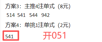 首先来看上期开奖号码为:051,和值为6,上期金胆5对,单挑一注中2码