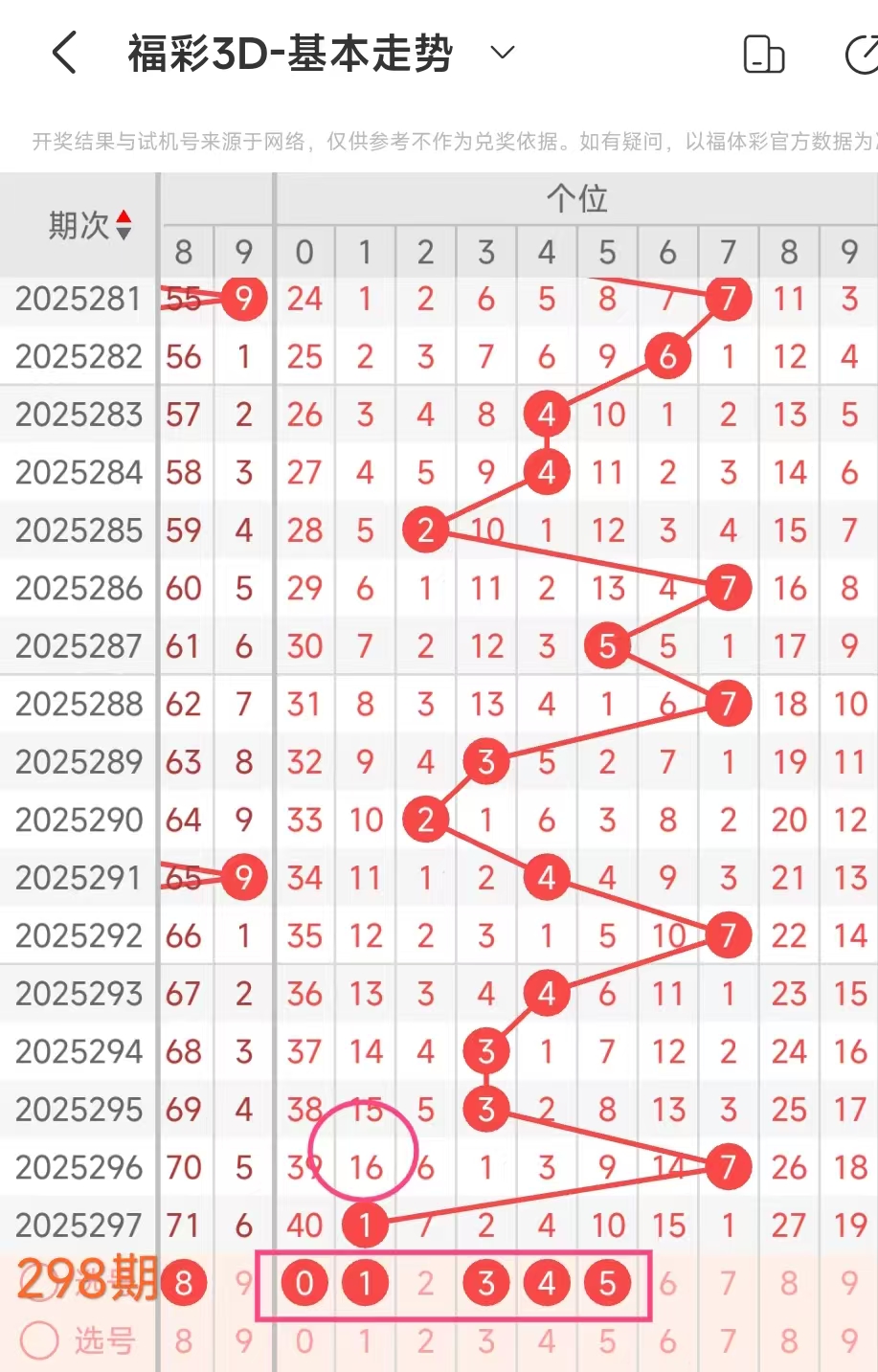 3、当个位开出1后下期开出:054497,经统计0号出1次、1号出现0次、2号出现0次、3号出现0次、4号出现2次、5号出现1次、6号出现0次、7号出现1次、8号出现0次、9号出现1次。观察发现4号出现多次趋势好,本期可以考虑。