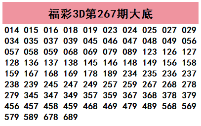 福彩3D第2025267期直播间大底参考: