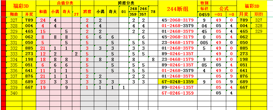 福彩3D--340期分析
