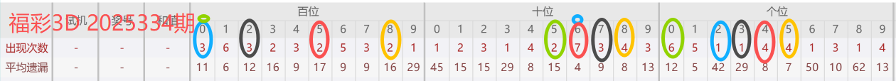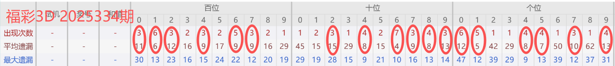 2025333期开奖号码273,我们可以看出近30期百位2出现3次,十位7出现3次,个位3出现1次。