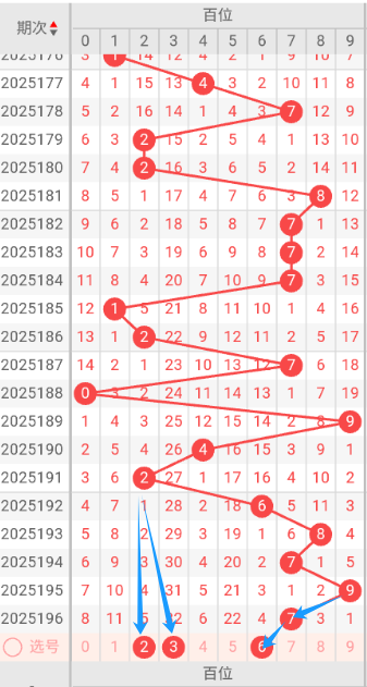 现在我给大家分析下,本期百位可能开出的号码,上期开出了7,184期开出了7号码球,185期开出了1号码球,186期开出了2号码球,187期开出了7号码球,188期开出了0号码球,189期开出了9号码球,190期开出了4号码球,191期开出了2号码球,192期开出了6号码球,193期开出了8号码球,194期开出了7号码球,195期开出了9号码球,196期开出了7号码球,根据就近几期的走势和历史30期内的走势对比,我们可以先考虑本期可能会出小号,下面我给大家推存百位可能开出的几个号,个人比较看好236,百位我们就先暂定这两个号。本期重点关2-8之间的号码,同时关注遗漏期数较小的号码。按最近遗漏走势,开了遗漏期数较小之后开遗漏期数大的可能性比较大。