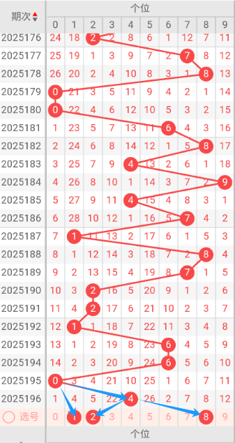 现在我给大家分析下,本期个位可能开出的号码,上期开出了4,184期开出了9号码球,185期开出了4号码球,186期开出了7号码球,187期开出了1号码球,188期开出了8号码球,189期开出了7号码球,190期开出了2号码球,191期开出了2号码球,192期开出了1号码球,193期开出了6号码球,194期开出了6号码球,195期开出了0号码球,196期开出了4号码球,跟据这几期的走势和历史30期内的走势对比,可以先考虑本期可能会出小号,下面我给大家推存个位可能开出的几个号,个人比较看128,个位我们就先暂定这两个号。本期重点关注1-8之间的号码,同时关注遗漏期数较大的号码。按最近遗漏走势,开了遗漏期数较大之后开遗漏期数小的可能性比较大。