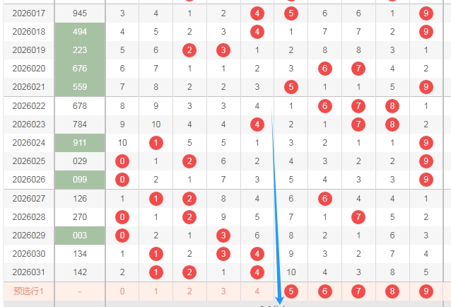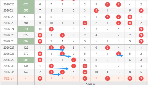 我在上图福彩3D走势图中标注出来的蓝色大箭头,你们看看蓝色大箭头的左边的数字最近几期出现的号码是不是比蓝色大箭头右边的数字多,最近3期开奖号码中,号码全部都是在蓝色大箭头的左边,那么本期蓝色大箭头的右边的数字56789至少也得出1个或者两个吧,小心全部出蓝色大箭头右边的数字。