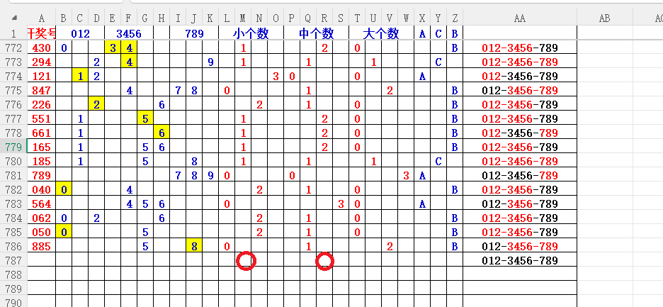 如上图56,大中小分析,中号3456出胆码,最低1个胆码,重点34
