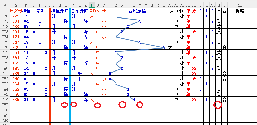 升降平:升就是本期和值大小比上期和值大小大,小于就是降,如果一样就是平,和尾也是一样。