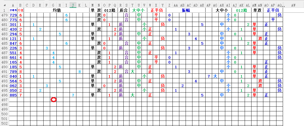 均值:就是开奖号每各数的总和除3,然后得到的余数,如果不够整除可以+1,-1,直到被整除得的数就是均值
