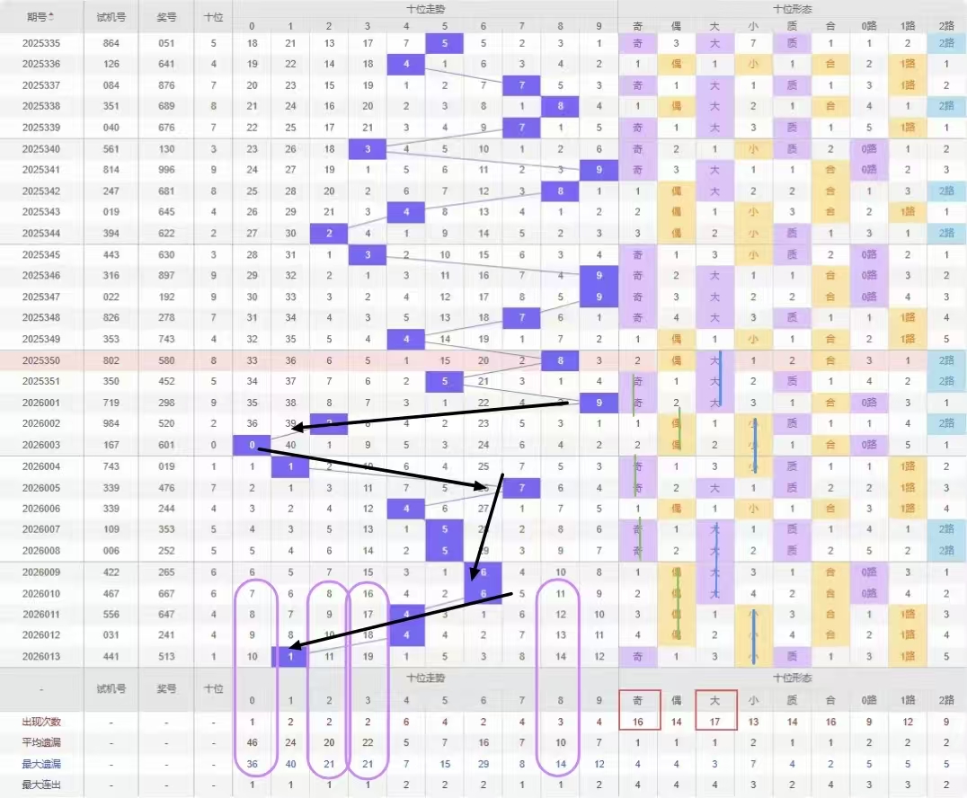 福彩3D第2026014期个位先分析奇数偶数,近15期开出奇数号8期开出偶数号7期,开出偶数号的概率与开出奇数号的概率几乎相同,上五期开出奇数号那么本期开出偶数号的概率较大建议选择遗漏期数较多的偶数号开出。杀号定在所有奇数号。
