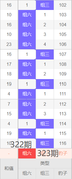 上期形态:组三,近10期的形态分别为:组三,组六,组六,组三,组六,组六,组六,组三,组六,组三,近期组三和组六的形态比较规律性,根据以往形态规律,本期个人认为需要重点关注组六落位,同时也需要防组三形态的开出。