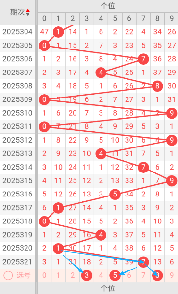 现在我给大家分析下,本期个位可能开出的号码,上期开出了7,310期开出了9号码球,311期开出了0号码球,312期开出了9号码球,313期开出了4号码球,314期开出了7号码球,315期开出了9号码球,316期开出了5号码球,317期开出了1号码球,318期开出了0号码球,319期开出了4号码球,320期开出了1号码球,321期开出了7号码球,跟据这几期的走势和历史30期内的走势对比,可以先考虑本期可能会出小号,下面我给大家推存个位可能开出的几个号,个人比较看好358,个位我们就先暂定这两个号。本期重点关注2-8之间的号码,同时关注遗漏期数较大的号码。按最近遗漏走势,开了遗漏期数较大之后开遗漏期数小的可能性比较大。
