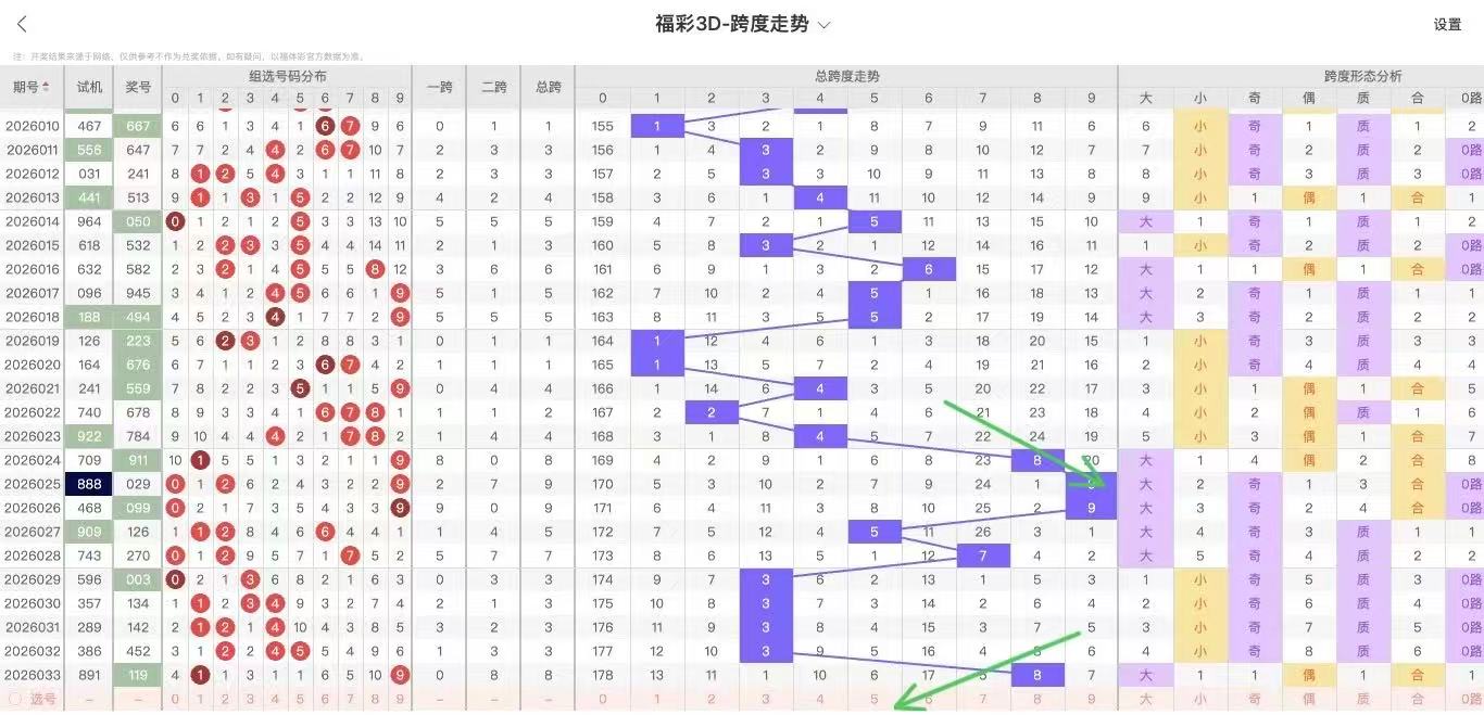 2026034期福彩3D跨度走势图如下:上期开出跨度8,而据观察近五期跨度大小走势为:小小小小大