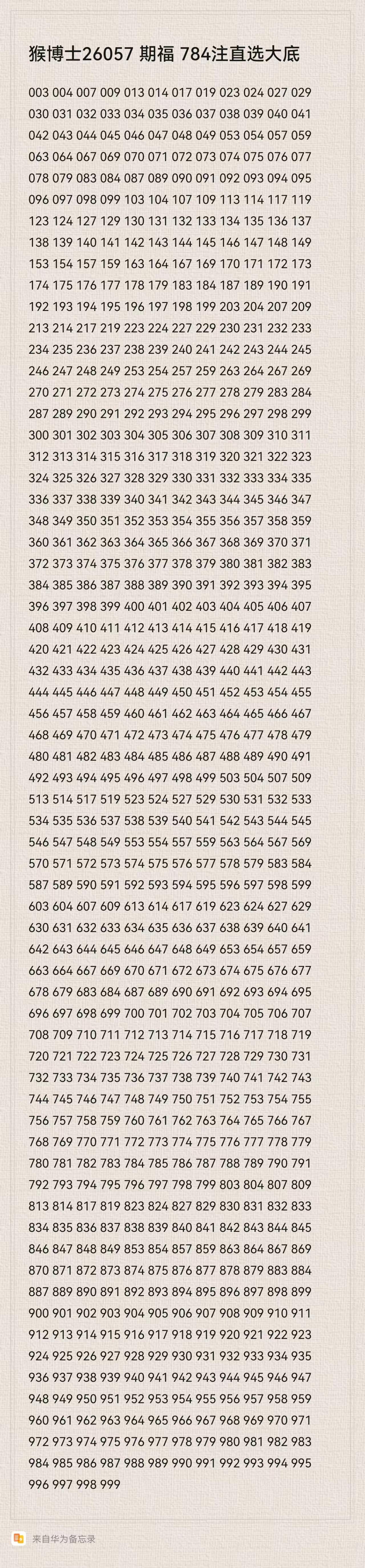 猴博士26057期福784注直选大底:(可以当母底用,然后进行缩水)