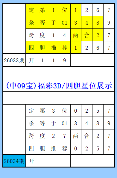 上期26033期开奖号为119,和值11,跨度8,两码组合包括11和19,和尾1。